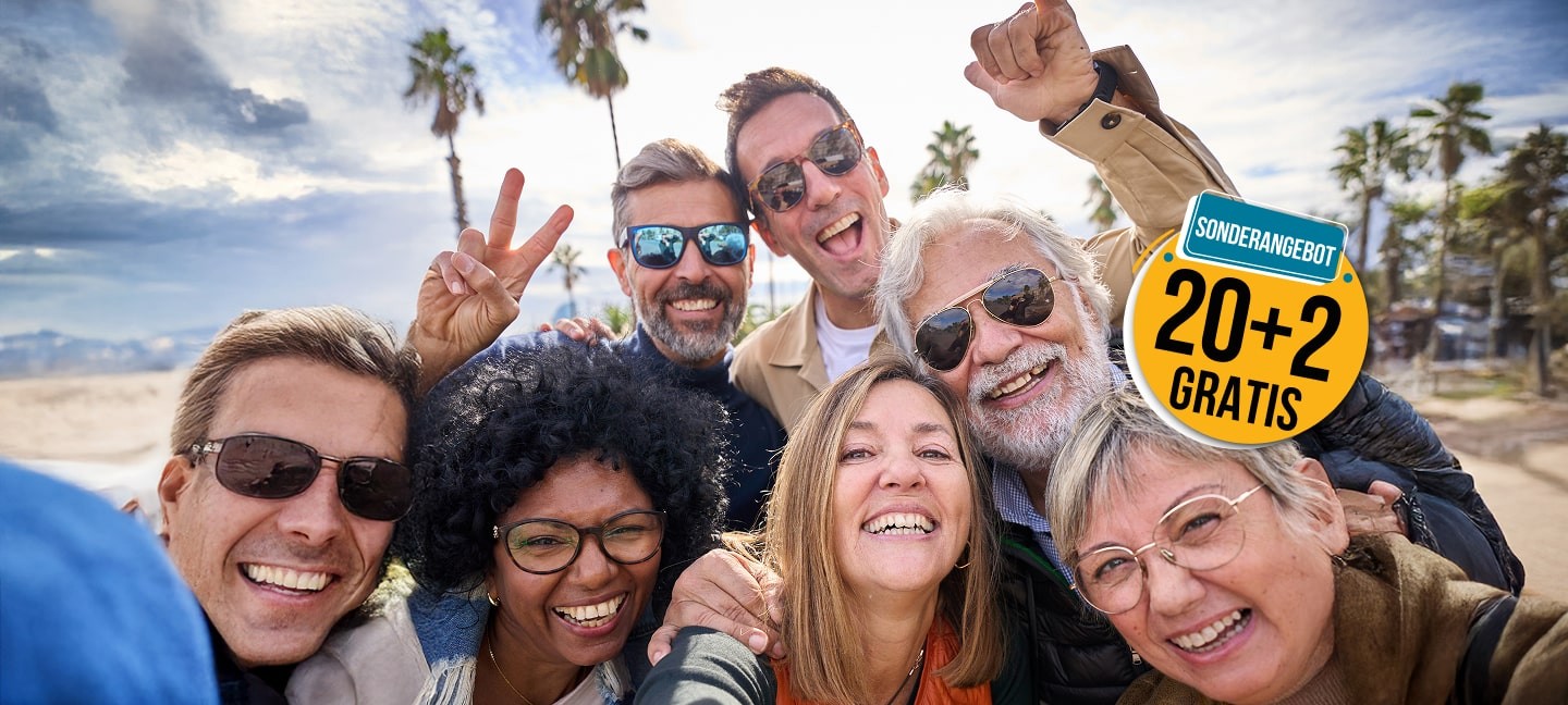 Vom 19. November bis 19. Dezember 2025 erhalten Sie unser exklusives Angebot „20 + 2 gratis“ auf alle neuen „Nur-Flug“-Buchungen für Reisen zwischen dem 1. April und dem 31. Oktober 2026 (letzter Rückflug). Dieses Angebot gilt für über 30 Reiseziele.