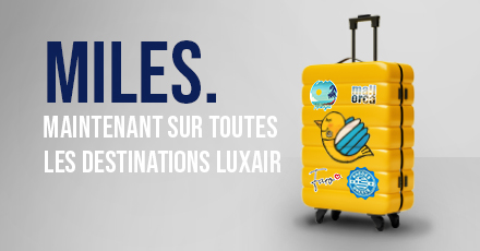 Luxair est un partenaire de longue date de Miles & More, le principal programme de fidélité en Europe. Depuis 2023, vous pouvez cumuler de précieux Miles sur tous nos vols et forfaits vacances vers plus de 90 destinations. C'est aussi le moment idéal pour vous récompenser en échangeant vos Miles contre des billets gratuits ou nos cartes cadeaux pour Luxair & LuxairTours !