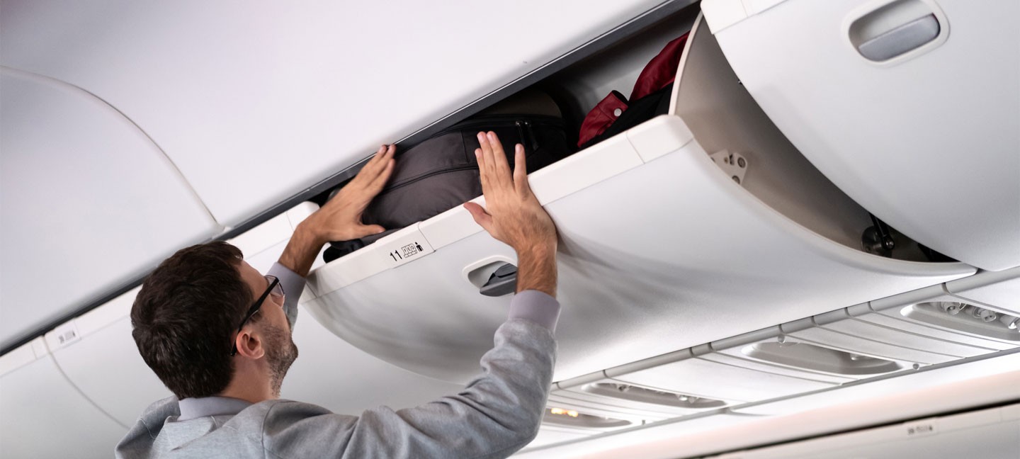 Luogo di stoccaggio: posizionate il vostro bagaglio a mano nel vano bagagli sopraelevato. Assicuratevi che i vostri cappotti siano riposti sopra il vostro bagaglio a mano. Questo risparmierà spazio oltre a lasciare posto per gli altri per riporre i loro effetti personali.